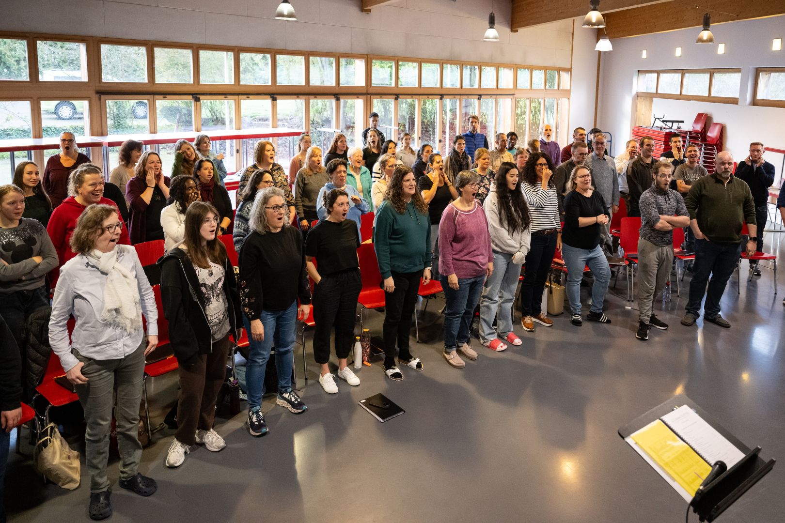 Seit Anfang des Jahres 2024 treffen sich die Sängerinnen und Sänger regelmässig zu Proben. Unter der Leitung erfahrener Chorleiter/innen arbeiten sie intensiv daran, die anspruchsvollen Partituren von Rob Gardners Oratorium zu meistern. Die Proben sind nicht nur musikalische Übungen, sondern auch Momente der Gemeinschaft und spirituellen Reflexion.